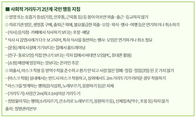 기존 2단계 국민 행동 지침은 다음과 같습니다.