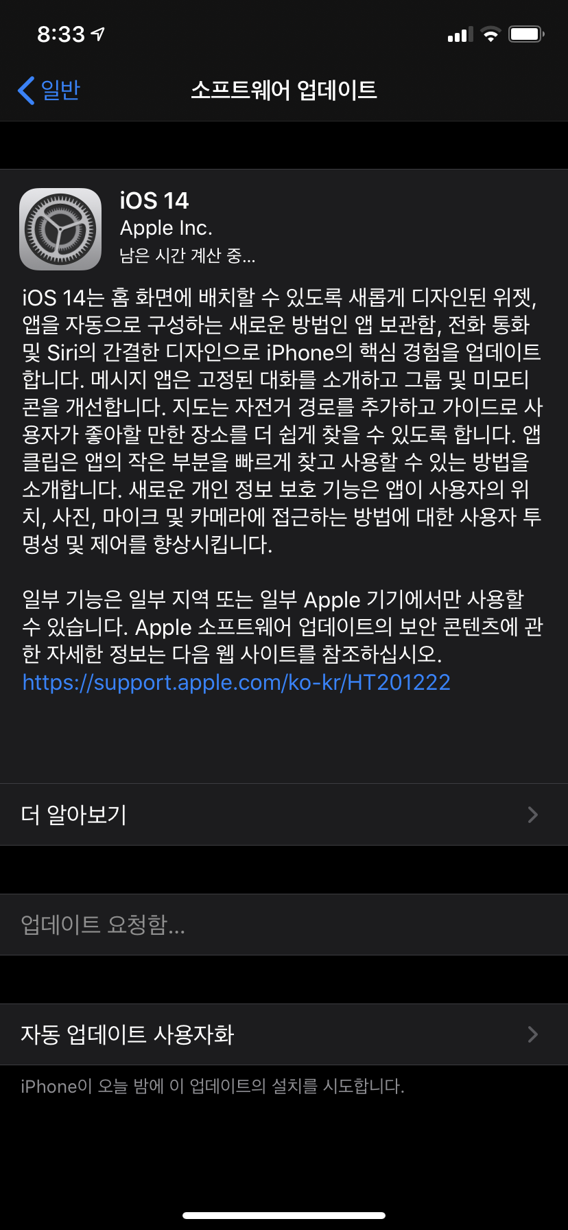 애플에서 아이폰을 위한 IOS 버전 IOS14를 정식 출시했습니다.
