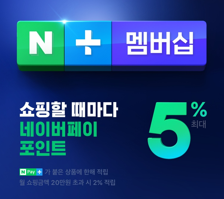 네이버 페이를 기본으로 사용하시는 분들 중, 네이버 페이 체크카드로 사용 금액의 1%만큼 포인트로 적립할 수 있는 이벤트와 같이 네이버 플러스 멤버십 유료 서비스를 이용하면 쇼핑할 때마다 네이버 페이 포인트를 기존 1~2%가 아닌 최대 5%까지 추가로 적립받을 수 있습니다. |