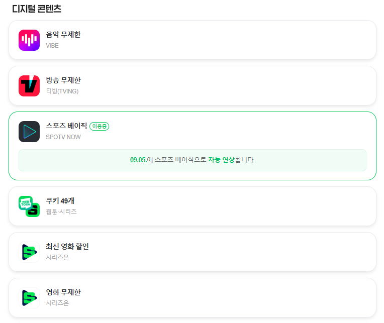 추가로 매달 받을 수 있는 디지털 서비스