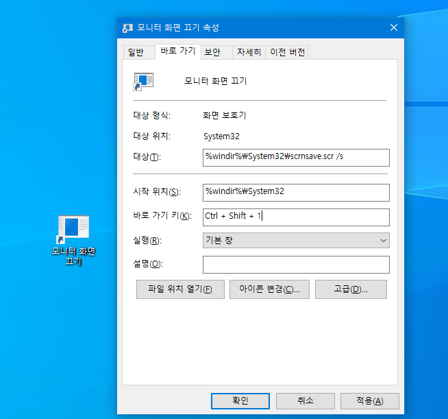 윈도우 10 모니터 화면 끄기 바로가기 키 설정