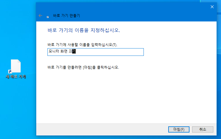 우리는 모니터 화면 끄기 명령어를 입력했으니, 바로가기 이름을 "모니터 화면 끄기"로 지정해볼까요.