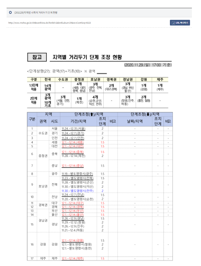 29일 일요일 정부에서 지역별 거리두기 단계를 조정했는데요.