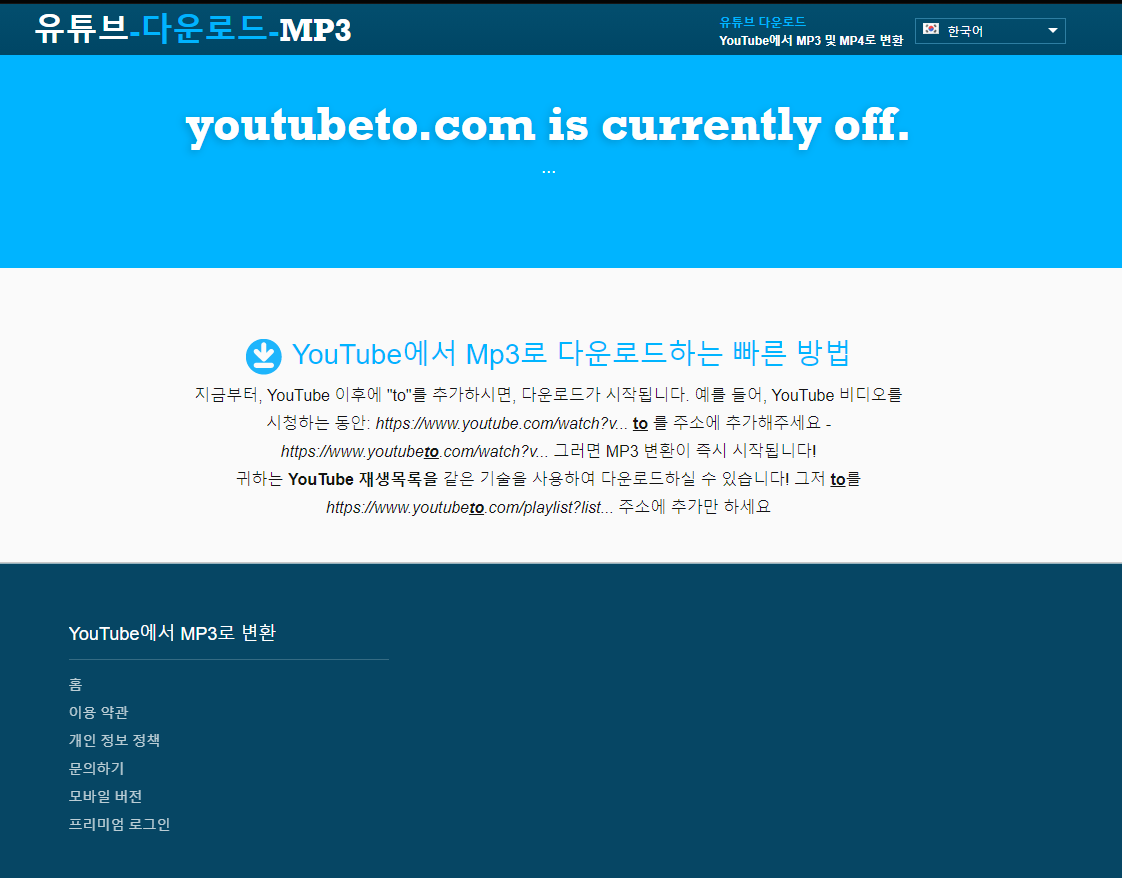 유튜베토(youtubeto) 유투부 다운로드 사이트 링크는 다음과 같습니다.