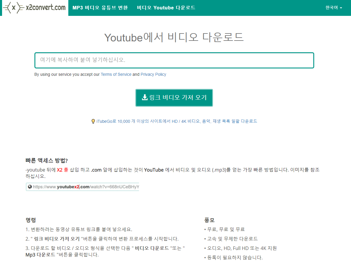 Youtube에서 비디오 다운로드 X2Convert.com - 최고의 무료 YouTube 다운로더