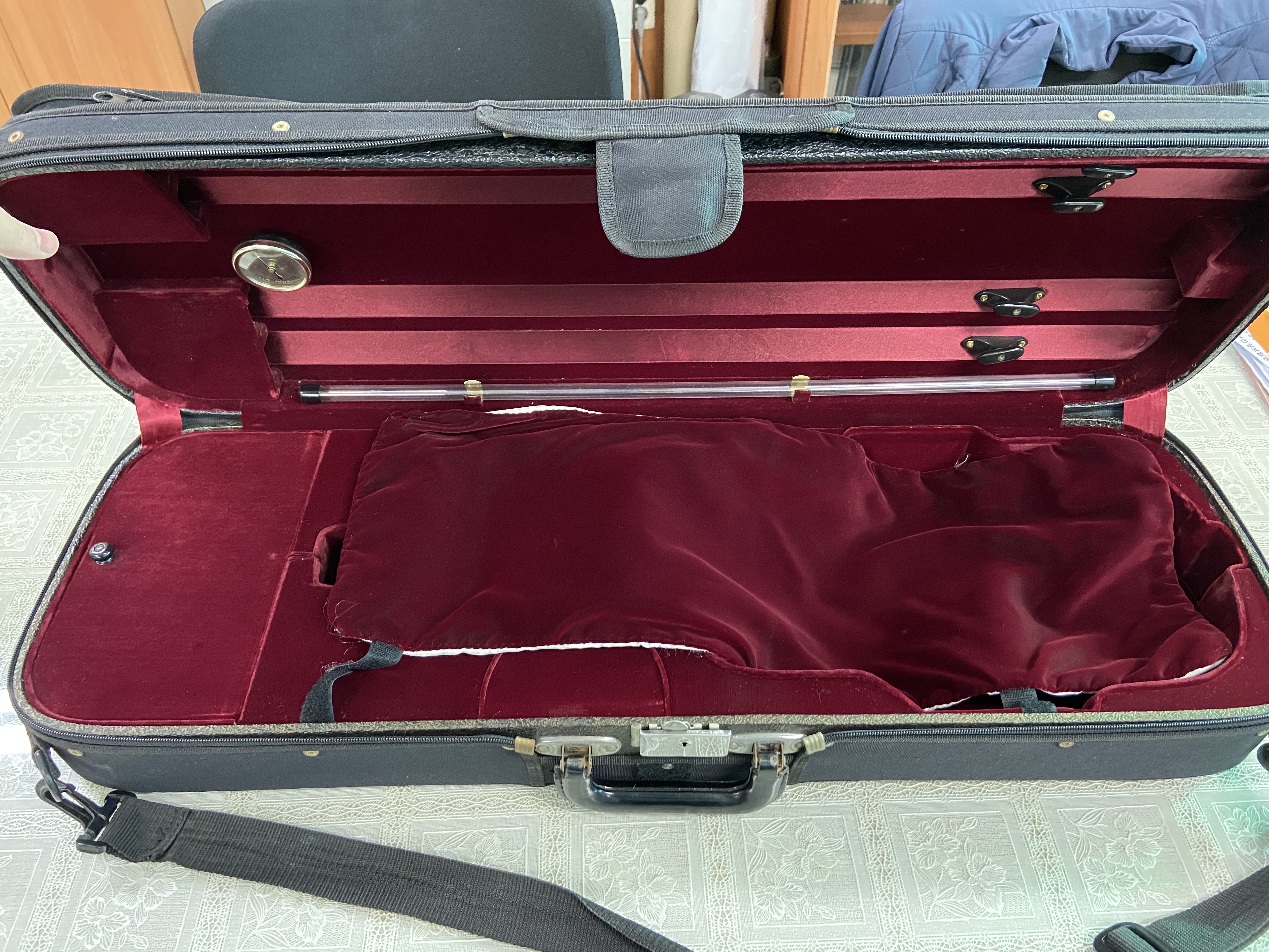 독일제 바이올린과 같이 미국에서 국내로 수입해왔던 우드케이스입니다. 전체 소재는 우드 케이스이며, 내부 hygrometer(온습도계)로 악기 습도 조절에 유리한 제품입니다. 내피 색상은 다크레드(?) 혹은 와인 색상이라 보면 되구요. 4분의4 사이즈 기준은 아래와 같으니 참조 바랍니다. - 사이즈 기준 ( 키 / 팔 길이 ) 4/4 : 145이상 / 60이상(성인용) 중고제품으로 생활기스 등 제품 상태는 사진과 같습니다.
