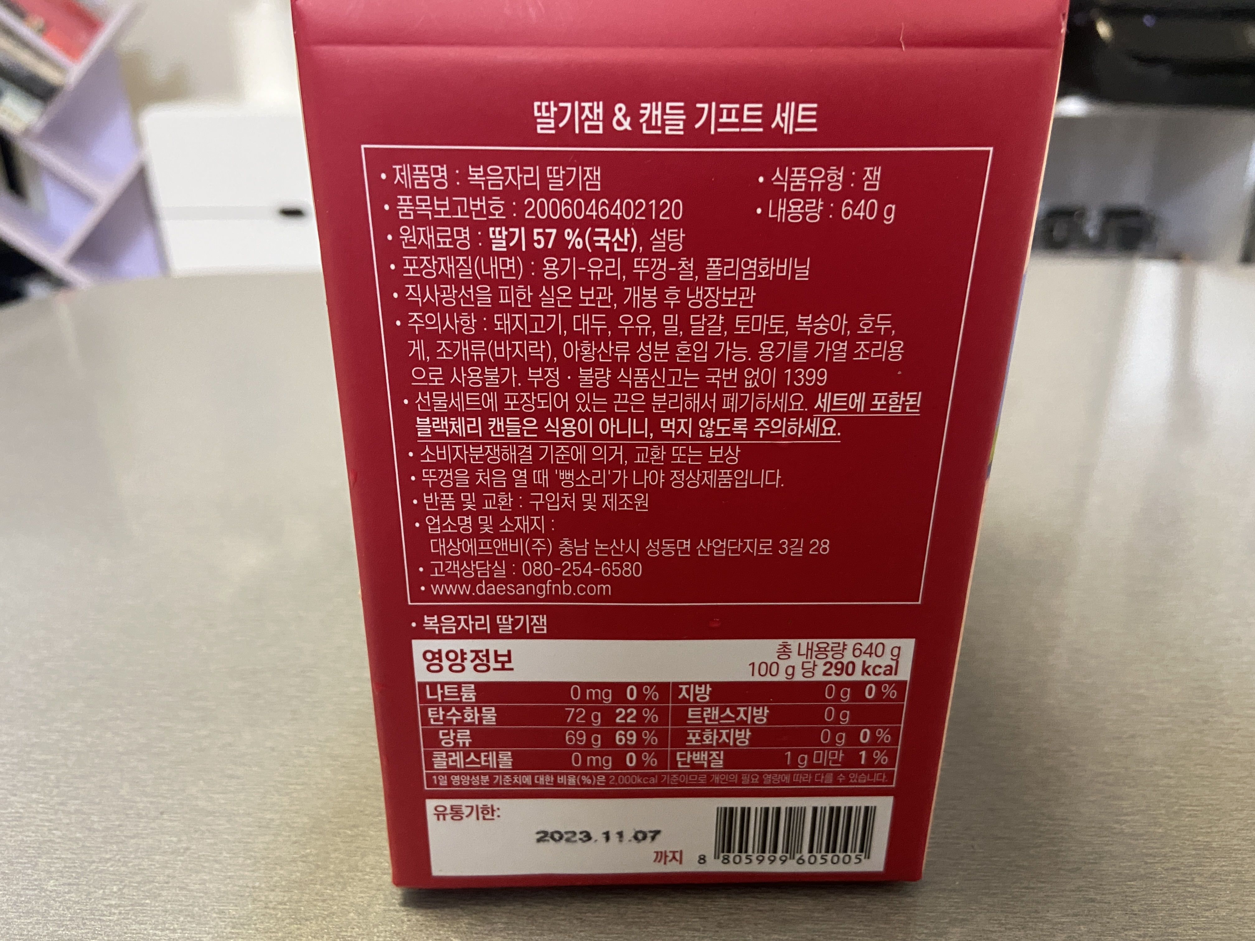 딸기잼 640g 에 양초, 추가로 메세지 카드도 들어있어요!