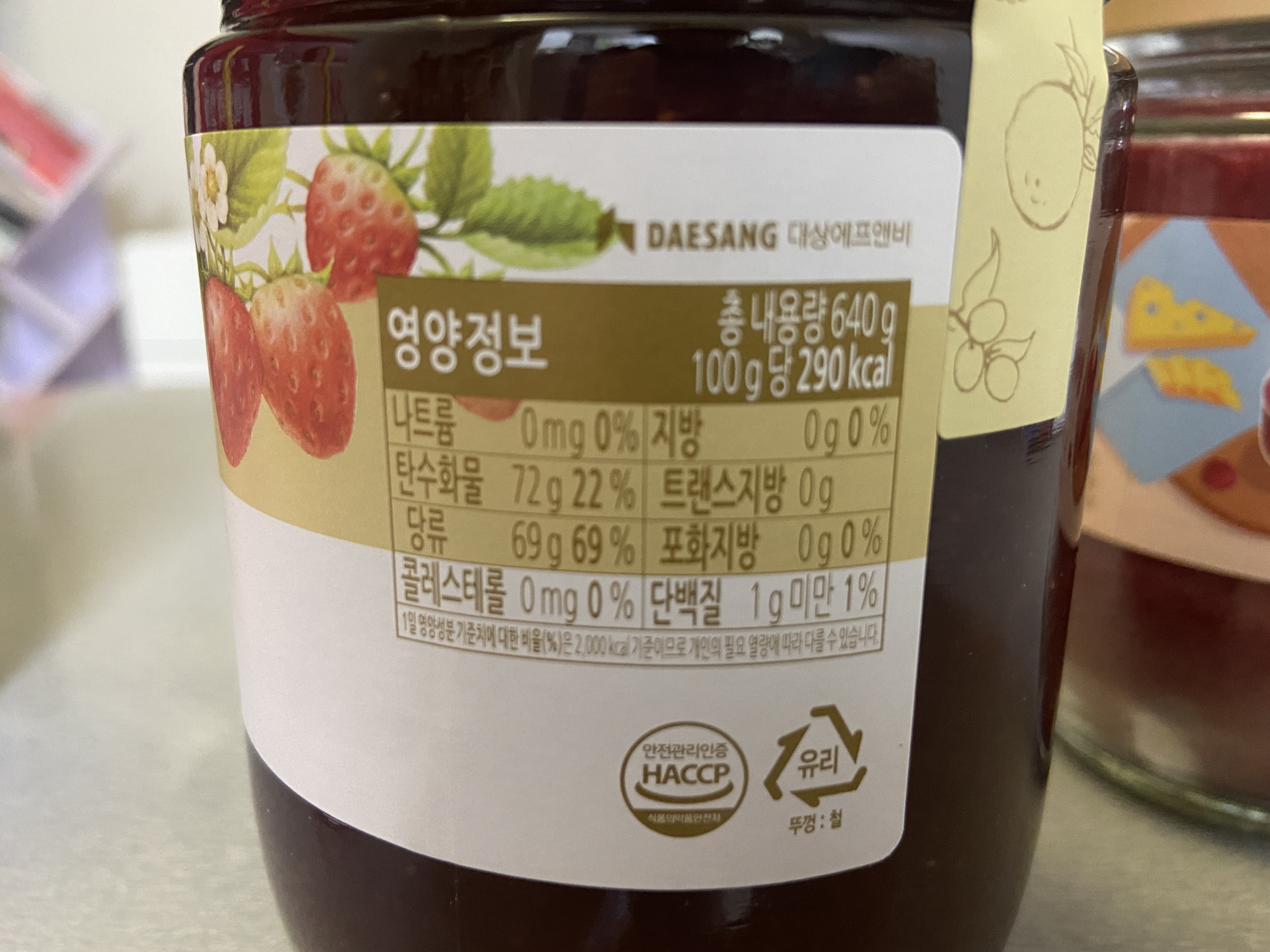 원재료가 딸기 57%와 설탕으로 만들었네요.