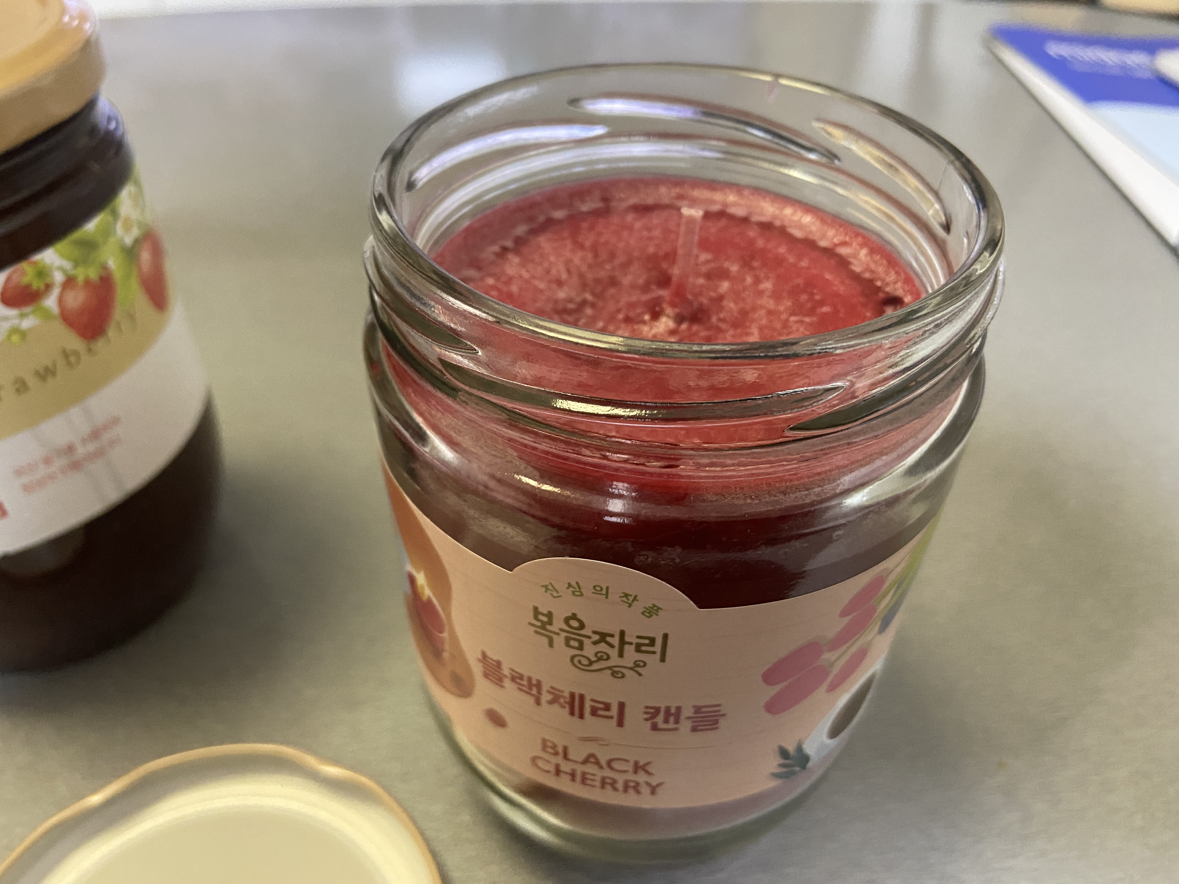 딸기잼에 추가로 들어있는 블랙체리 캔들입니다!