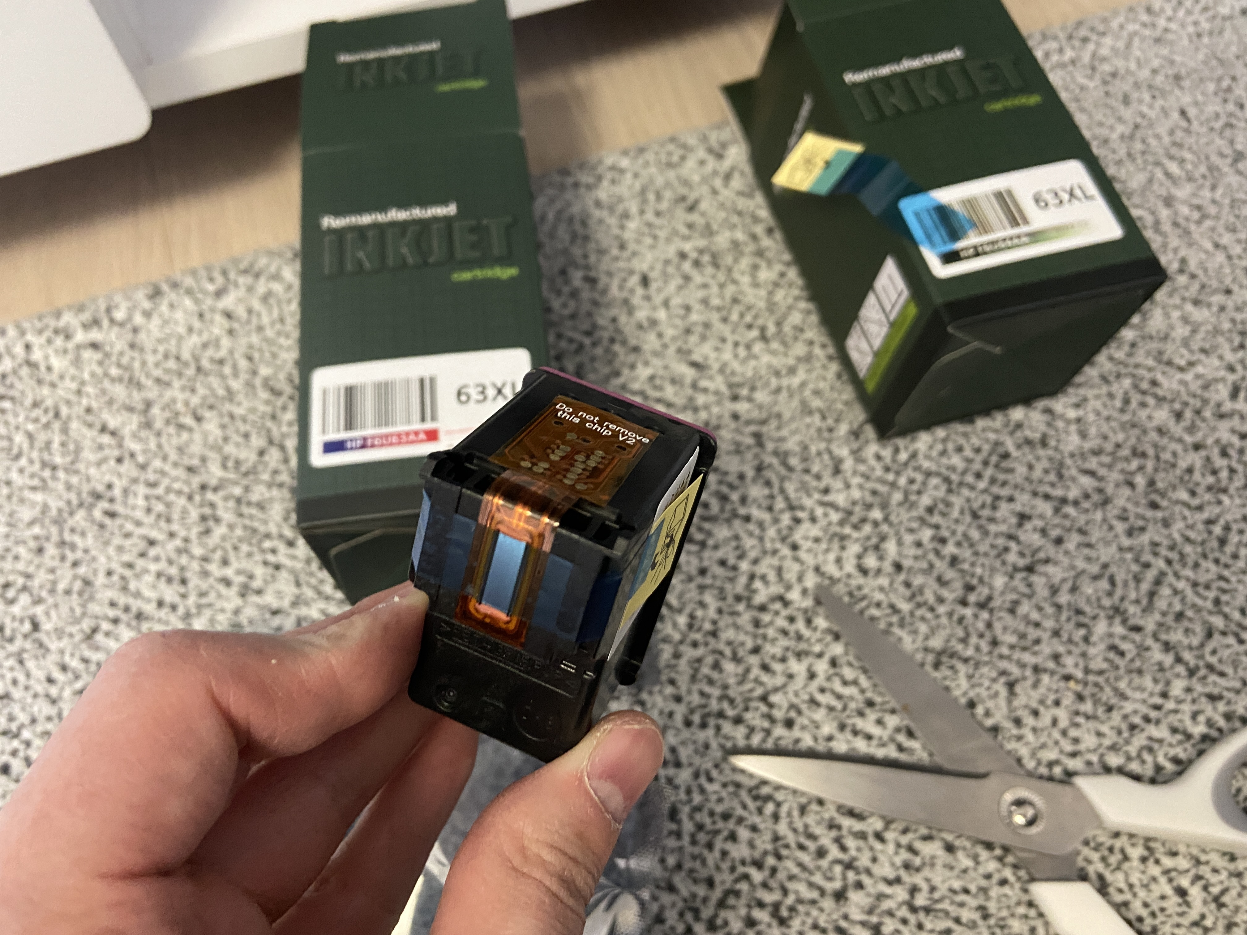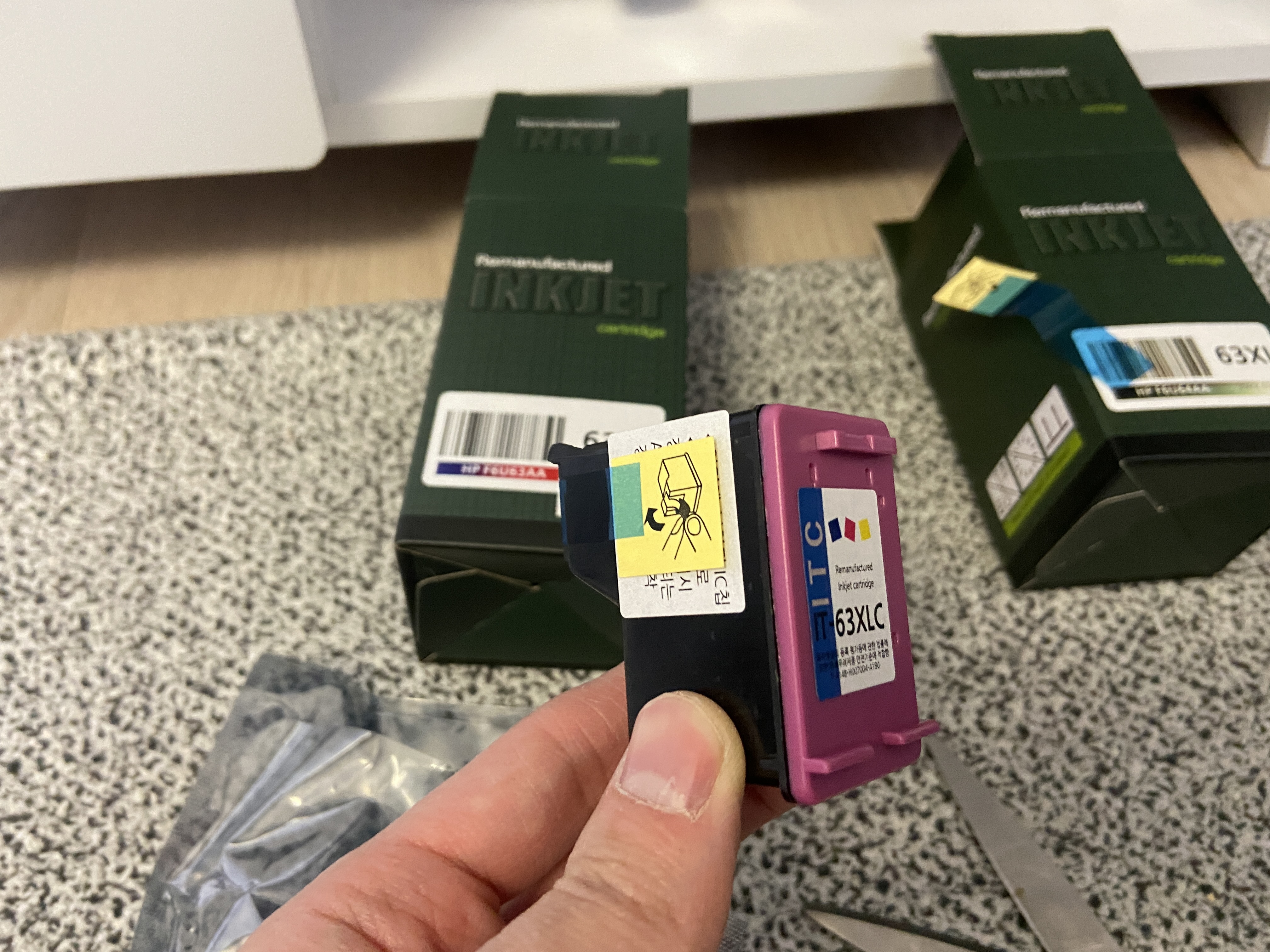그렇게 교체받은 검정 잉크 카트리지 hp 63 xl 박스 제거,
