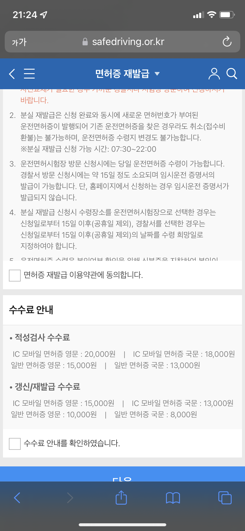 면허증 신청하기를 누르면,