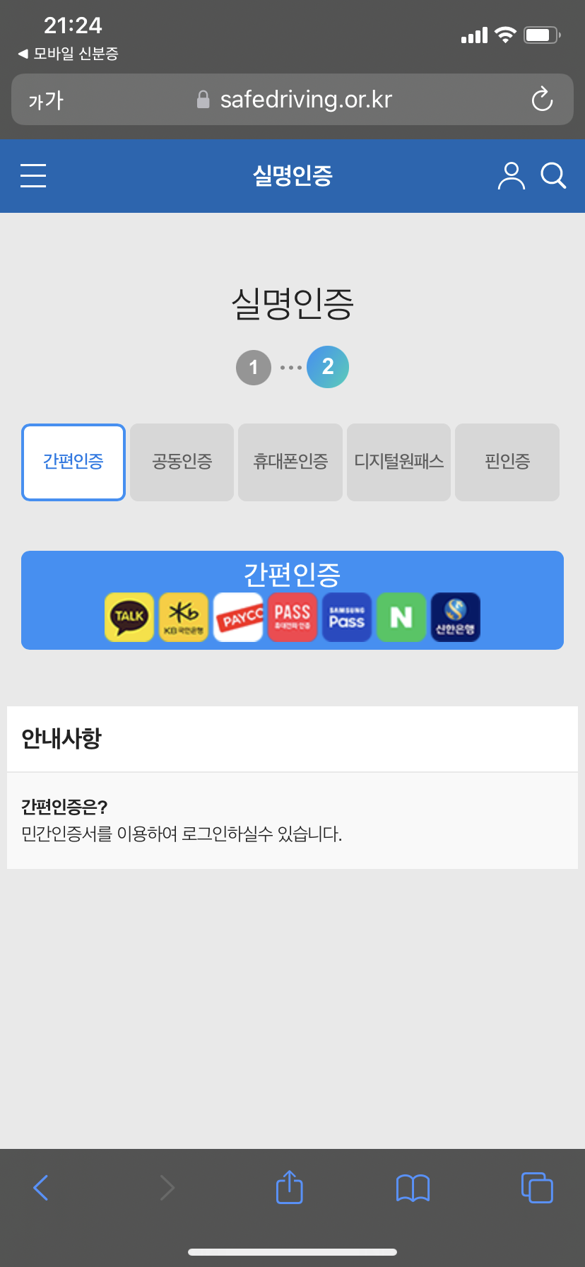간편인증, 공동인증, 휴대폰인증, 디지털원패스 등 핀인증으로 실명인증이 가능합니다.