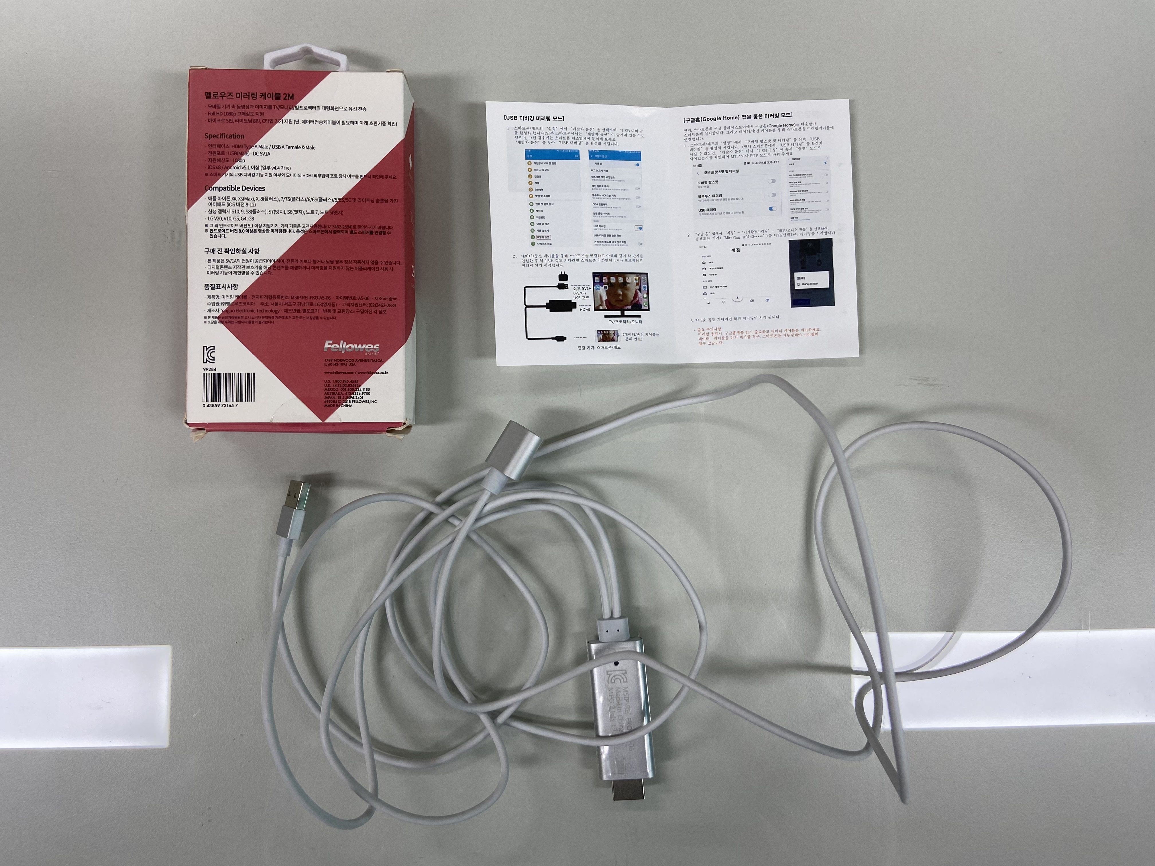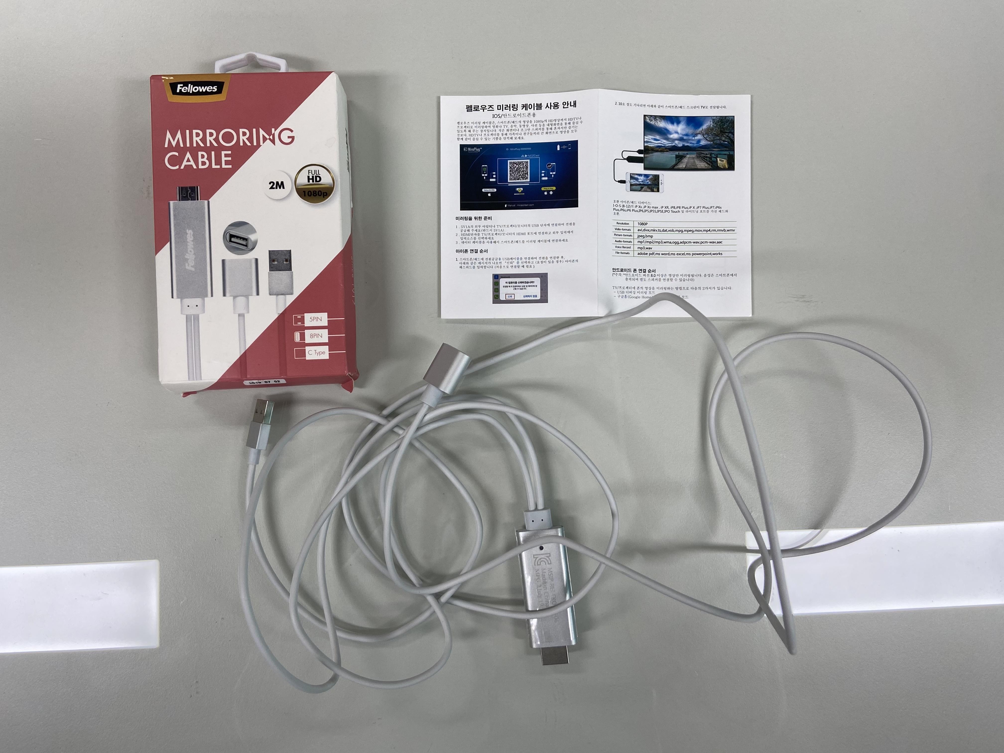모바일 기기 속 동영상과 이미지를 TV나 모니터로 전송하는 미러링 케이블이며,