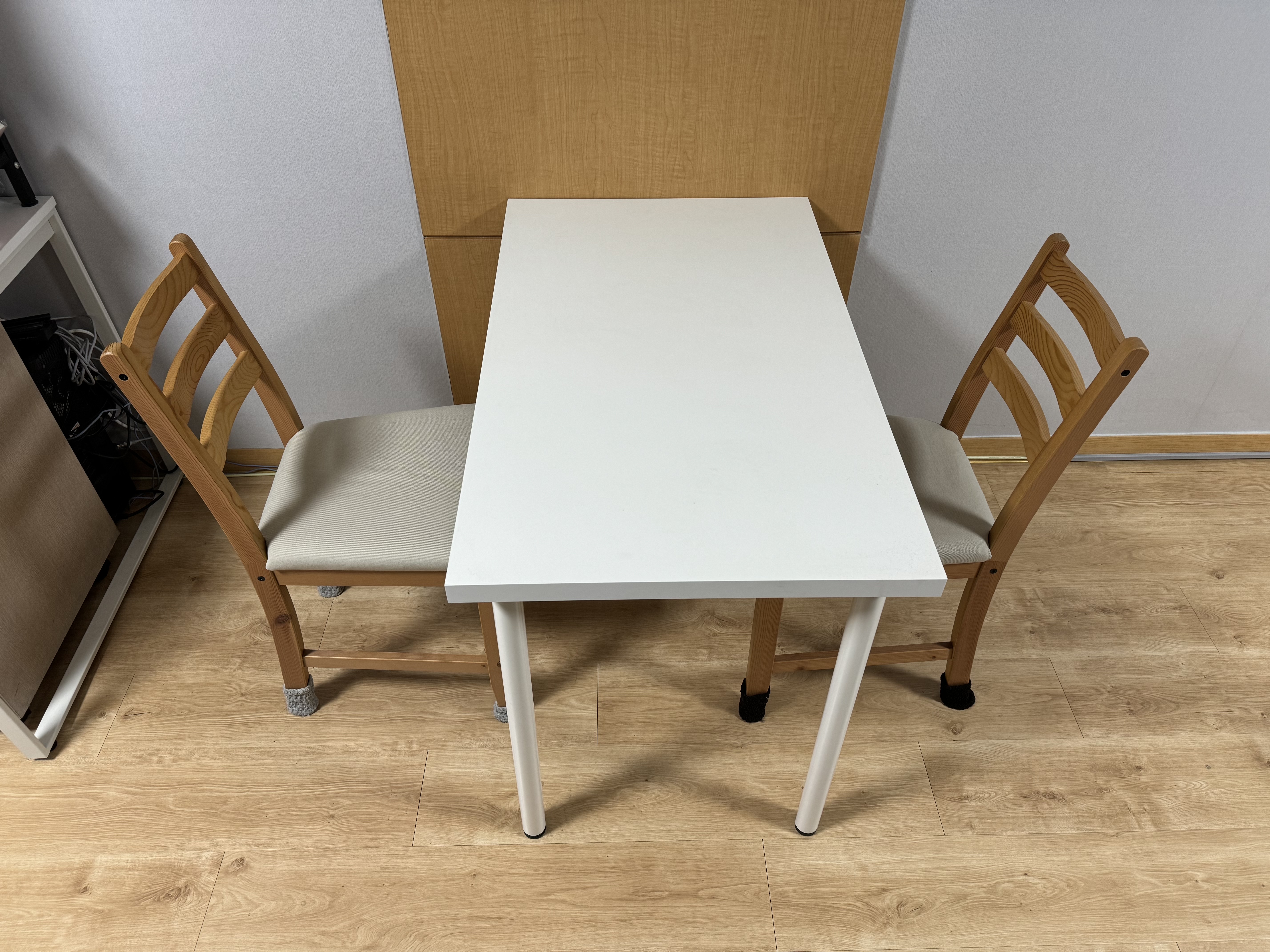 4인용 이케아 식탁 (화이트), 이케아 의자 2개 세트입니다.